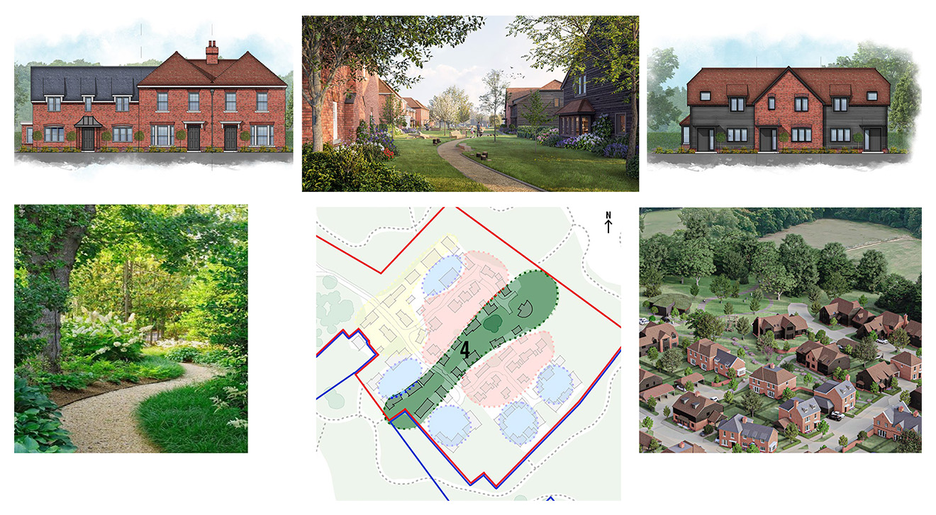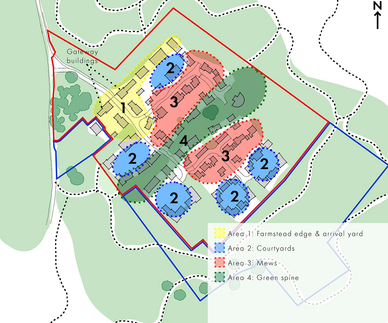 Consistent with the previously approved planning applications, the proposed development continues the design intent of the earlier schemes, drawing from key principles of historic farmsteads, including building layout, scale, and distinctive features. Architectural elements such as barn-like structures, generous open spaces, and the use of natural, locally appropriate materials will be integral to the design.