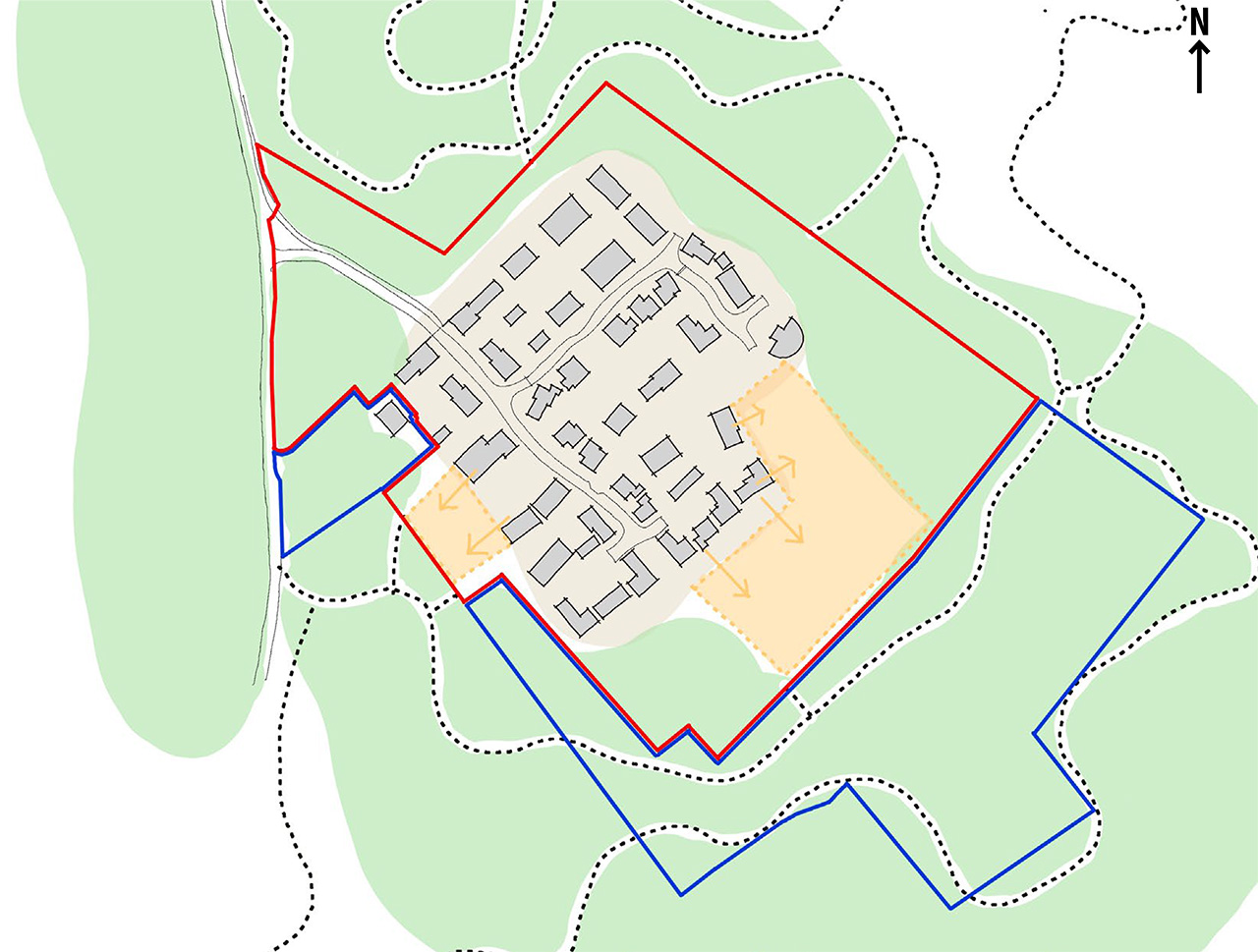 The proposed development seeks to extend the development area further to the south and south-west beyond the approved 86 home scheme as illustrated by the plan below.